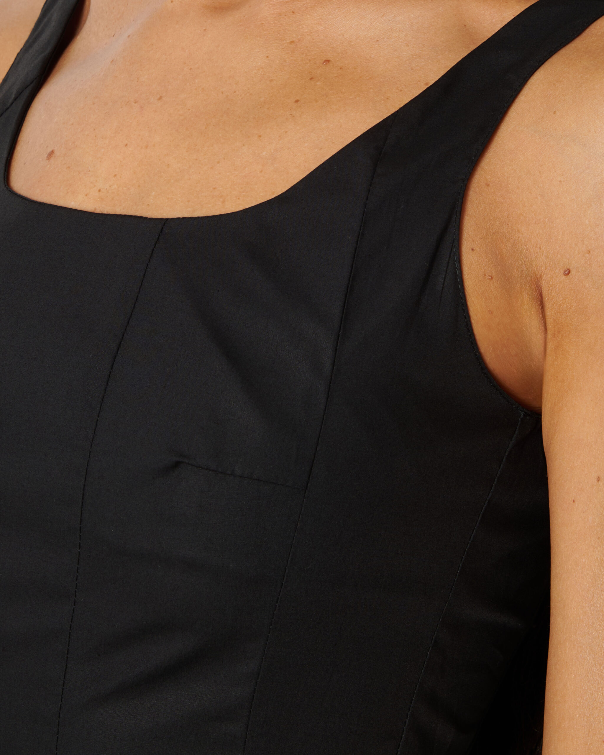 Realizzato in cotone, questo abito è definito da una silhouette aderente sul busto che si apre in una gonna ampia. Il modello presenta uno scollo quadrato e spalline sottili, con chiusura posteriore a zip invisibile.
